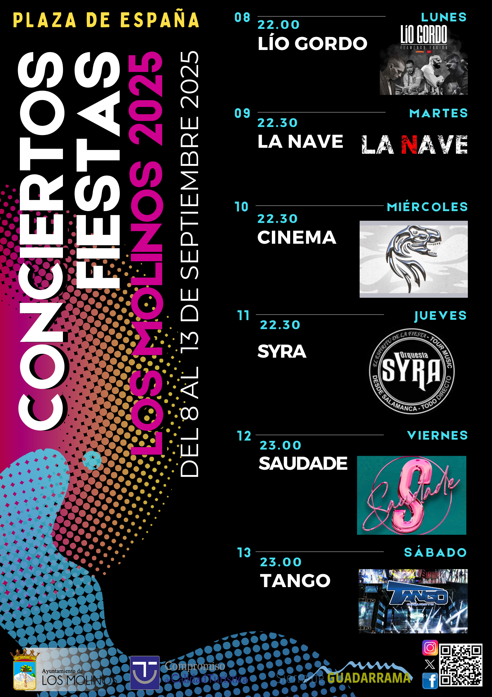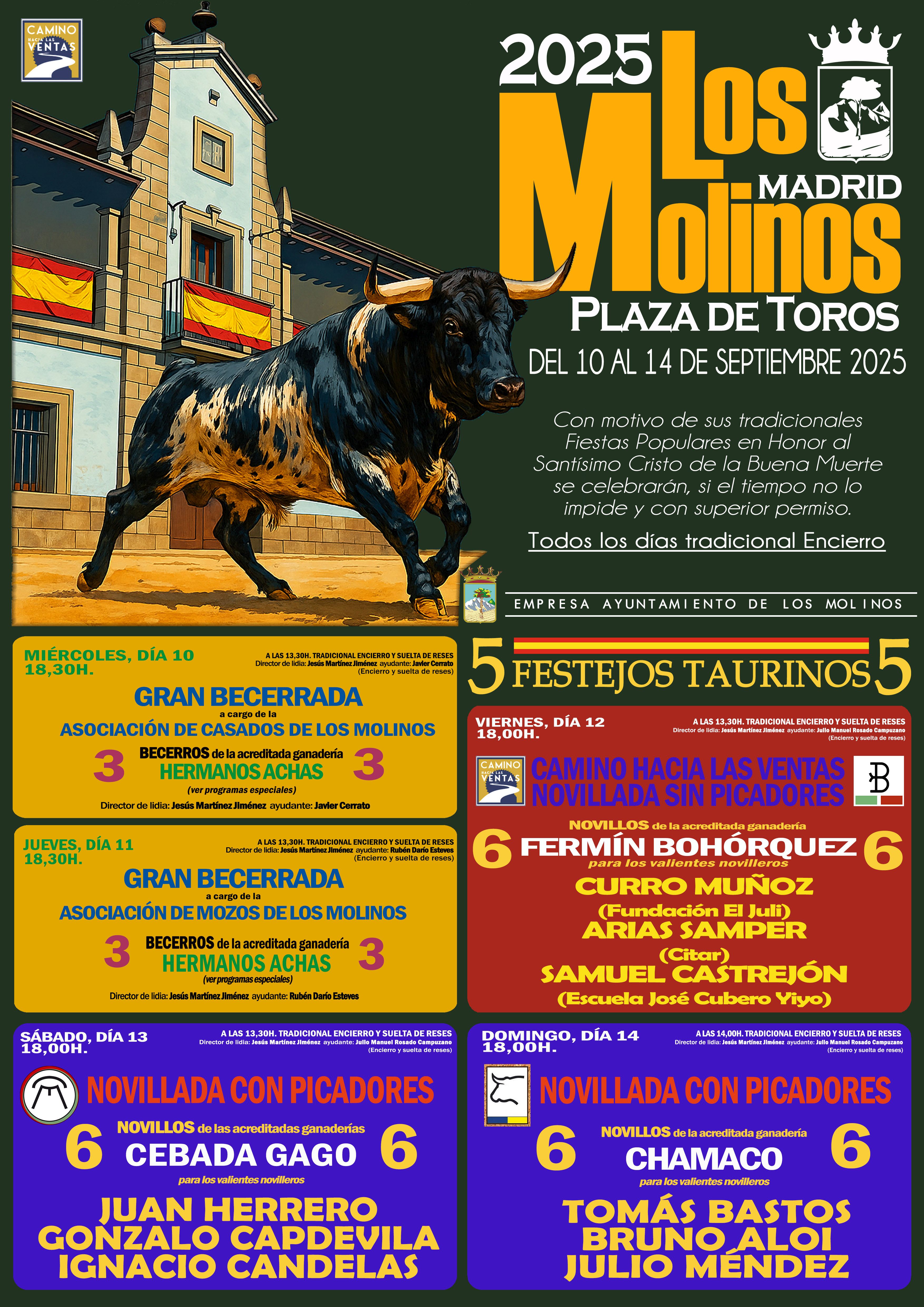 Los Molinos se dispone a vivir, del 8 al 14 de septiembre, sus tradicionales Fiestas Patronales en honor al Santísimo Cristo de la Buena Muerte, una cita que combina devoción, tradición y diversión y que cada año reúne a vecinos y visitantes en torno a una de las celebraciones más importantes de la Sierra de Guadarrama.