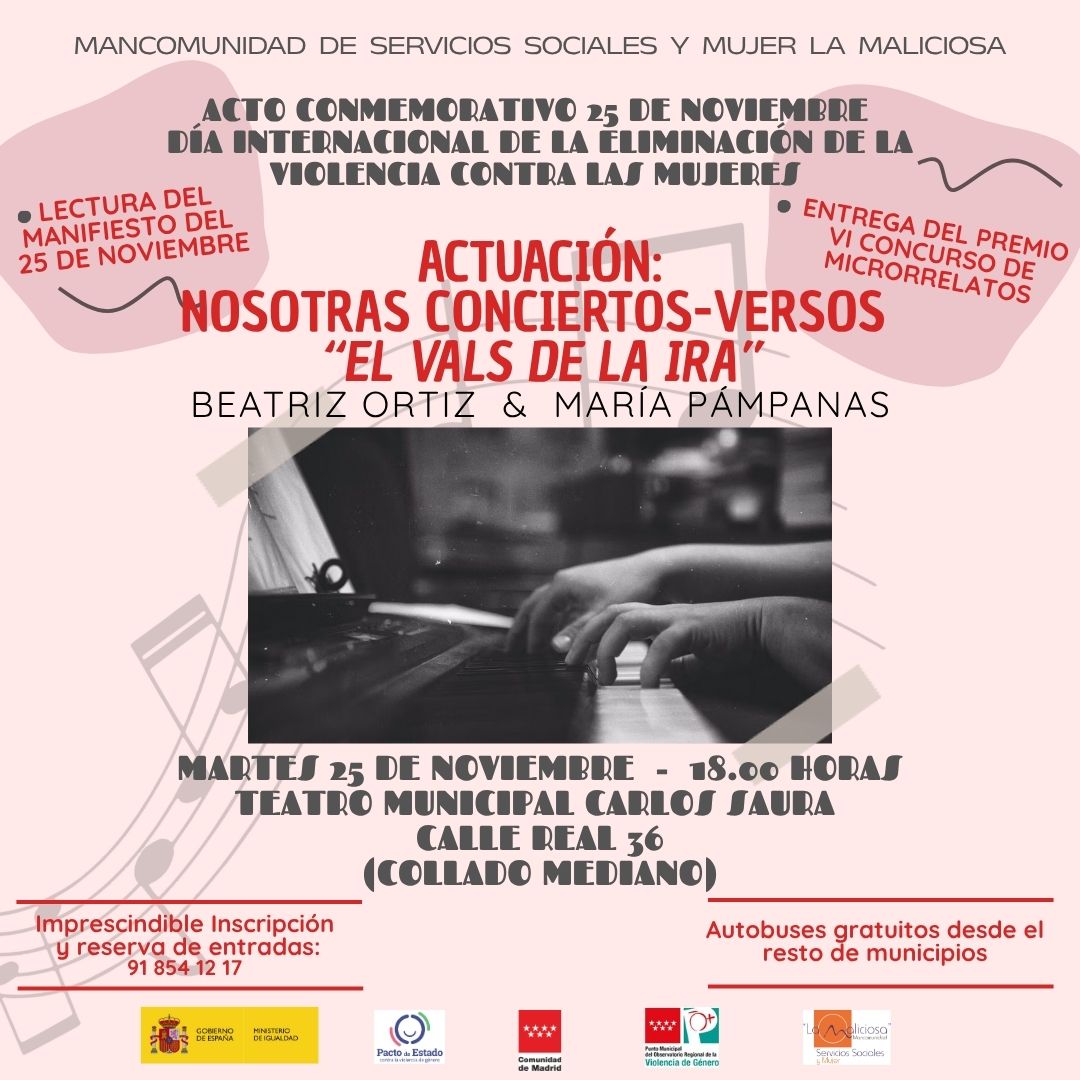 - Actuación de «NOSOTRAS CONCIERTOS-VERSOS» con la obra «El Vals de la Ira», a cargo de Beatriz Ortiz y María Pámpanas.