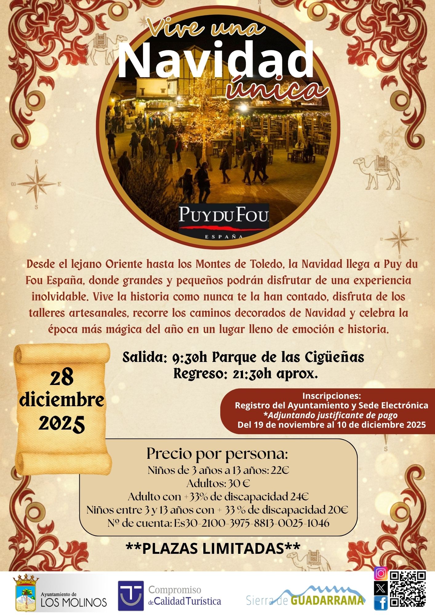 El Ayuntamiento de Los Molinos, a través de su Concejalía de Turismo, ha organizado una emocionante excursión para que vecinos y vecinas, grandes y pequeños, vivan una Navidad única en Puy du Fou España, ubicado en los Montes de Toledo.