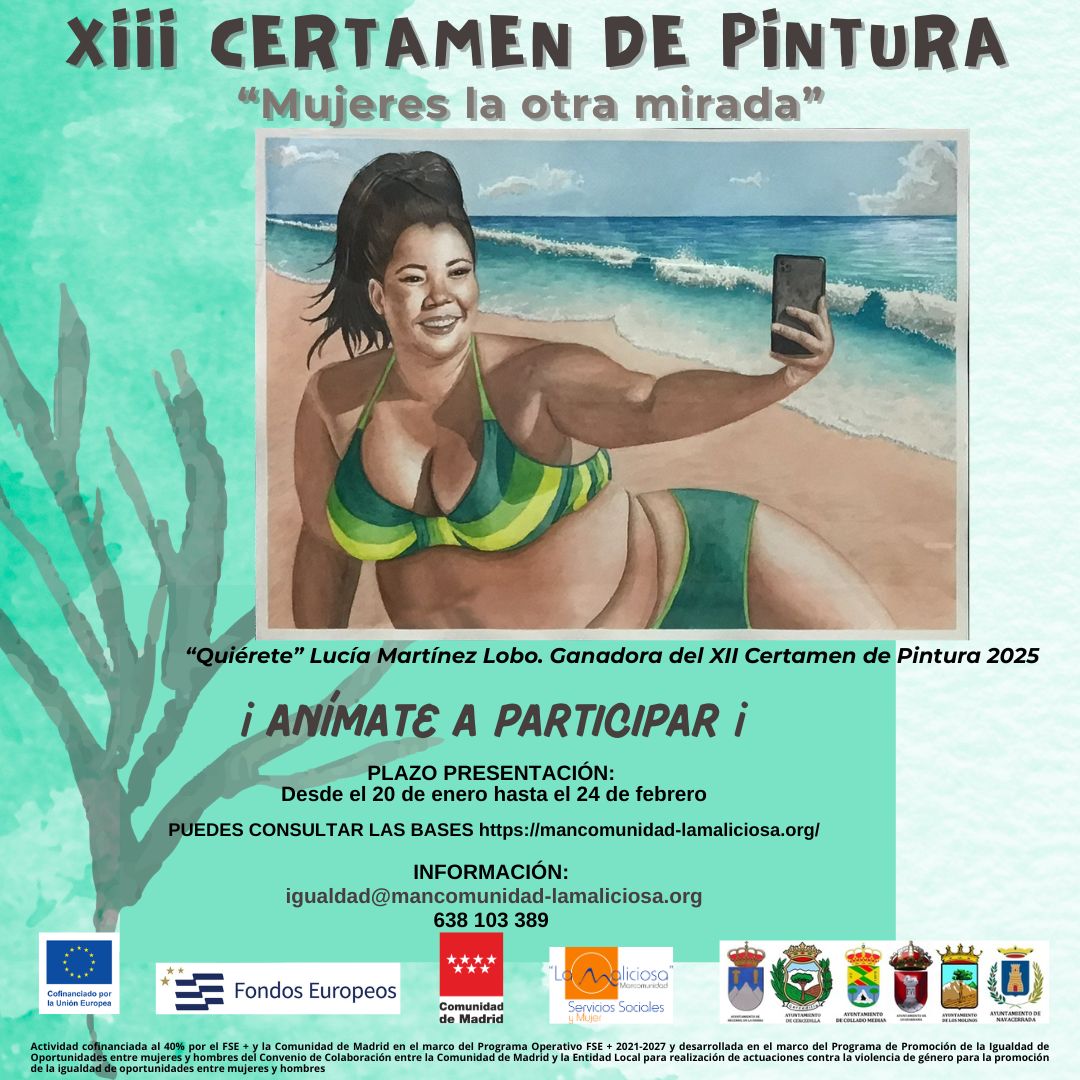 El Ayuntamiento de Los Molinos, a través de la Mancomunidad de Servicios Sociales La Maliciosa, anima a la ciudadanía a participar en el XIII Certamen de Pintura “Mujeres, la otra mirada”, una iniciativa cultural que promueve la igualdad y la visibilización de las mujeres a través del arte.