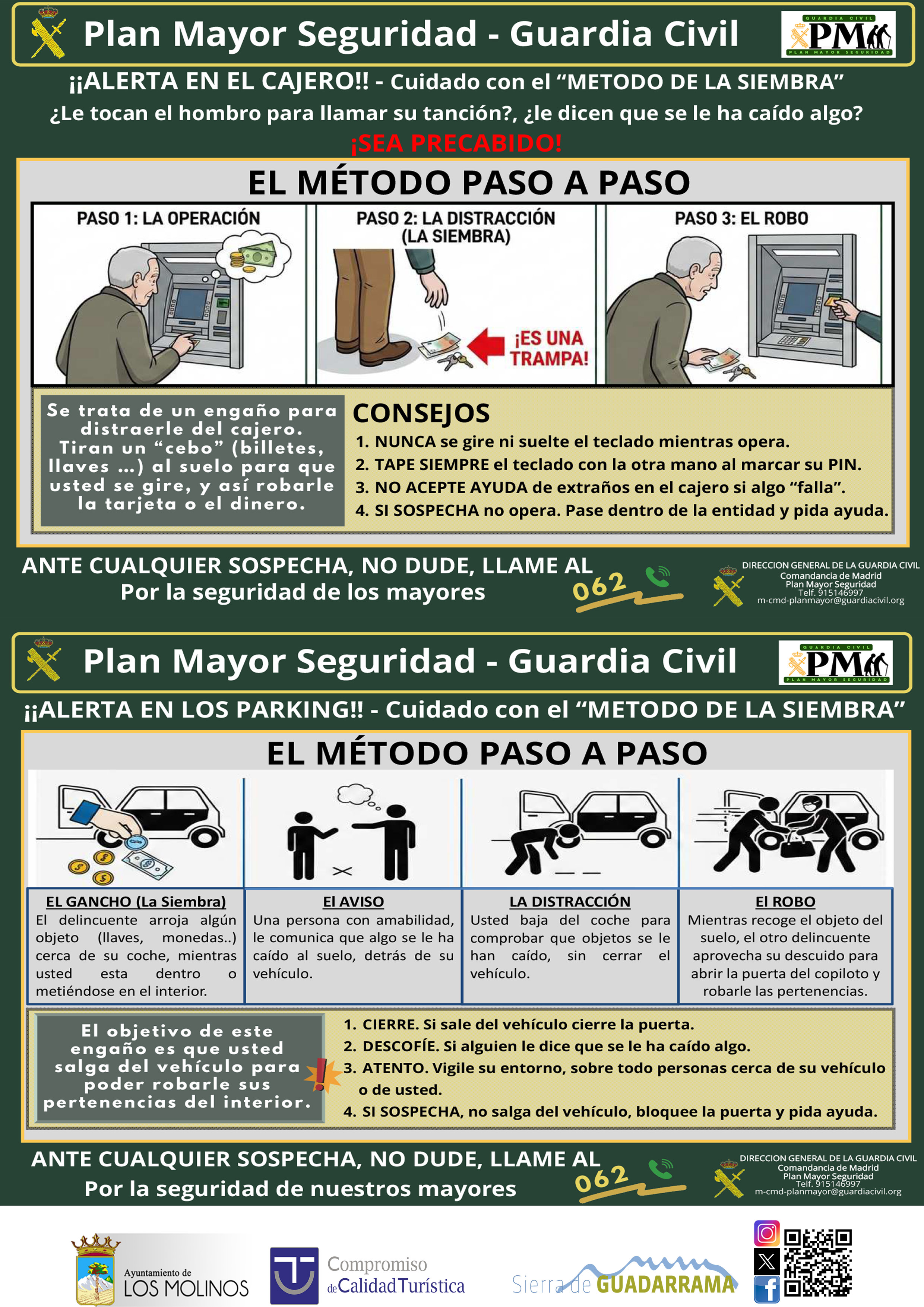 El Ayuntamiento de Los Molinos, en colaboración con la Guardia Civil, difunde una alerta preventiva para advertir a la población —especialmente a las personas mayores— sobre el denominado “método de la siembra”, una técnica de distracción utilizada por delincuentes para cometer robos en cajeros automáticos y aparcamientos.